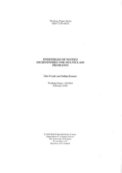 Frank, E. & Kramer, S. (2004). Ensembles of nested dichotomies for multi-class problems. (Working paper 06/2004). Hamilton, New Zealand: University of Waikato, Department of Computer Science.