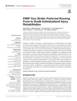 Despite the wealth of research on injury prevention and biomechanical risk factors for running related injuries, their incidence remains high. It was suggested that injury prevention and reconditioning strategies should consider spontaneous running forms in a more holistic view and not only the injury location or specific biomechanical patterns. Therefore, we propose an approach using the preferred running form assessed through the Volodalen method to guide injury prevention, rehabilitation, and retraining exercise prescription. This approach follows three steps encapsulated by the PIMP acronym. The first step (P) refers to the preferred running form assessment. The second step (I) is the identification of inefficiency in the vertical load management. The third step (MP) refers to the movement plan individualization. The answers to these three questions are guidelines to create individualized exercise pathways based on our clinical experience, biomechanical data, strength conditioning knowledge, and empirical findings in uninjured and injured runners. Nevertheless, we acknowledge that further scientific justifications with appropriate clinical trials and mechanistic research are required to substantiate the approach.