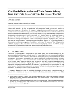Kingsbury, A. (2015). Confidential information and trade secrets arising from University research: Time for greater clarity? New Zealand Business Law Quarterly, March, 67–87.