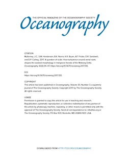 Mullarney, J. C., Henderson, S. M., Norris, B. K., Bryan, K. R., Fricke, A. T., Sandwell, D. R., & Culling, D. P. (2017). A question of scale: How turbulence around aerial roots shapes the seabed morphology in mangrove forests of the Mekong Delta. Oceanography, 30(3), 34–47. https://doi.org/doi.org/10.5670/oceanog.2017.312