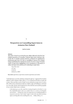 Crocket, K. (2017). Perspectives on counselling supervision in Aotearoa New Zealand. New Zealand Journal of Counselling, 37(2), 1–19.