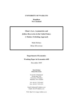Holmes, M. & Silverstone, B. (2005). Okun’s law, asymmetries and jobless recoveries in the United States: A Markov-switching approach. (Department of Economics Working Paper Series, Number 6/05). Hamilton, New Zealand: University of Waikato.