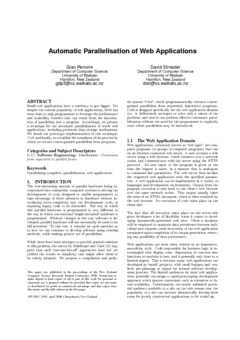 Perrone, G. & Streader, D. (2008). Automatic parallelization of Web applications. In J. Holland, A. Nicholas, D. Brignoli (Eds), Proceedings of New Zealand Computer Science Research Student Conference (NZCSRSC 2008). Canterbury University, Christchurch, New Zealand, 14-18 April, 2008. (pp. 129-136). Christchurch, New Zealand: Canterbury University.