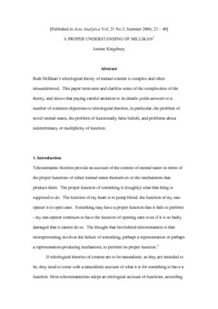 Kingsbury, J. (2006). A proper understanding of Millikan. Acta Analytica, 21(3), 23-40.