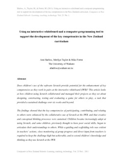 Harlow, A., Taylor, M. & Forret, M. (2011). Using an interactive whiteboard and a computer-programming tool to support the development of the key competencies in the New Zealand curriculum. Computers in New Zealand Schools: Learning, teaching, technology, 23(1).
