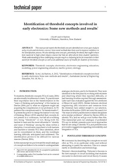 Scott, J. & Harlow, A. (2012). Identification of threshold concepts involved in early electronics: Some new methods and results. Australasian Journal of Engineering Education (AJEE), 18(1), 1-8.