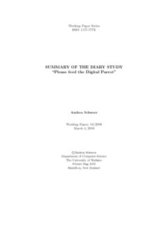 Schweer, A. (2008). Summary of the diary study: “Please feed the digital parrot”. (Working paper 04/2008). Hamilton, New Zealand: University of Waikato, Department of Computer Science.